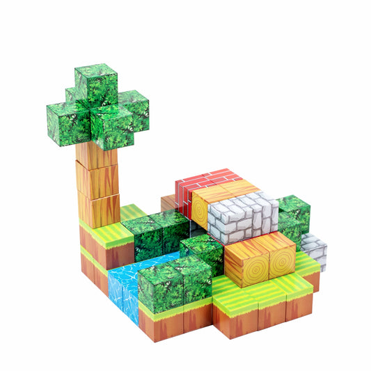Magnetic Building Blocks - Portal to the Nether (128pcs) + 4 Random Figures